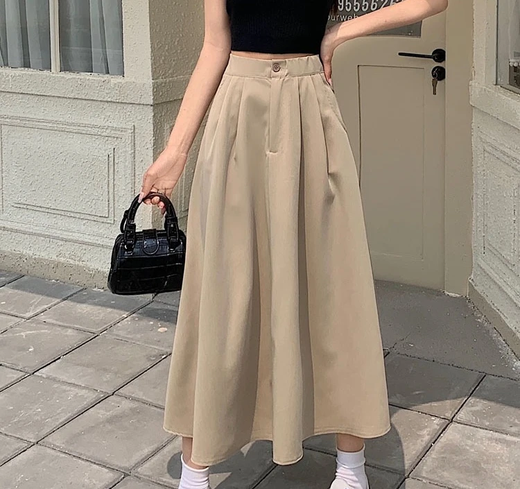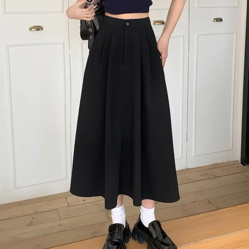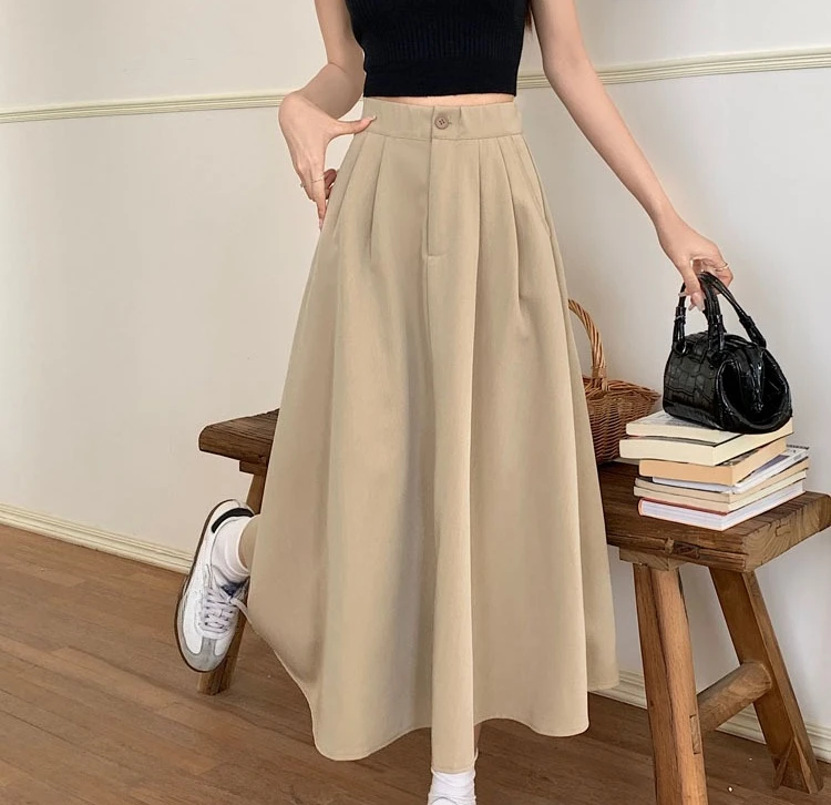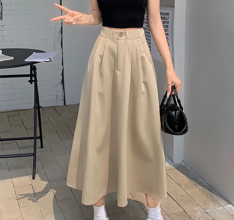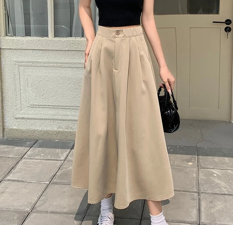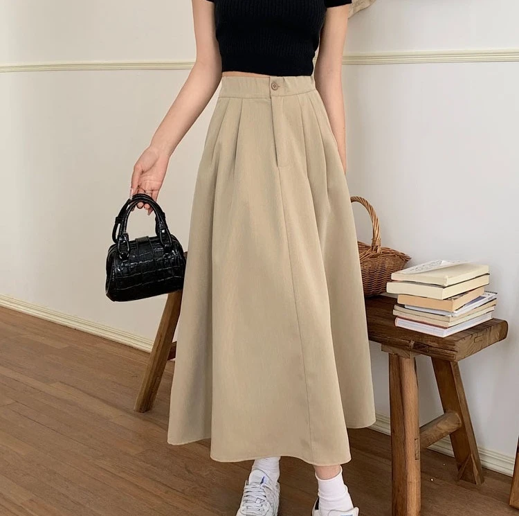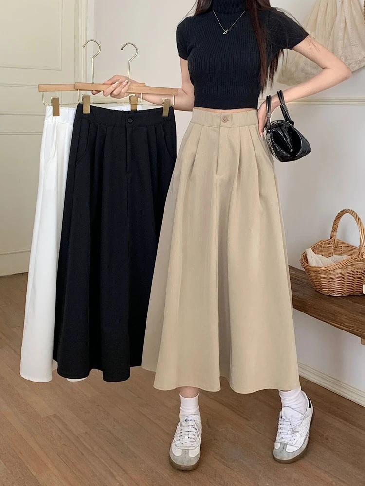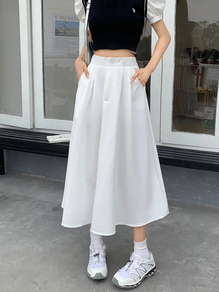 High Waist Women's A-Line Skirt Solid Color Casual Loose Single Button Korean Style Umbrella Skirt Women