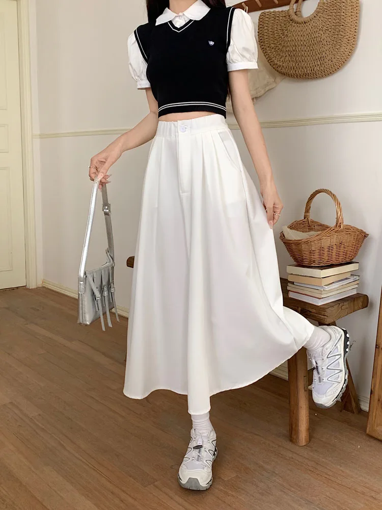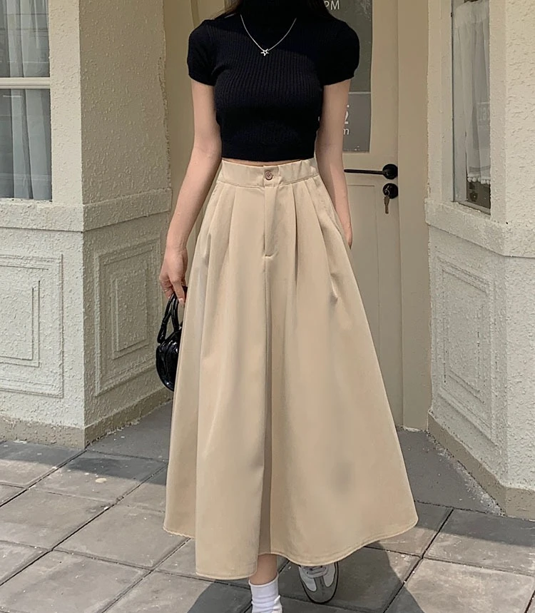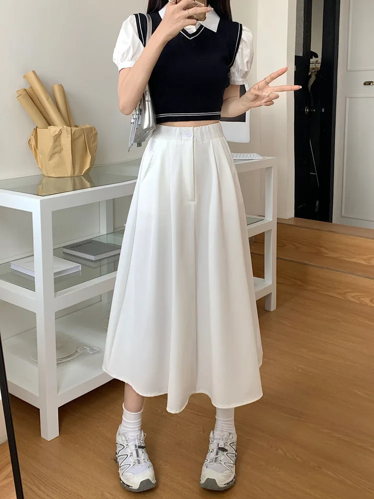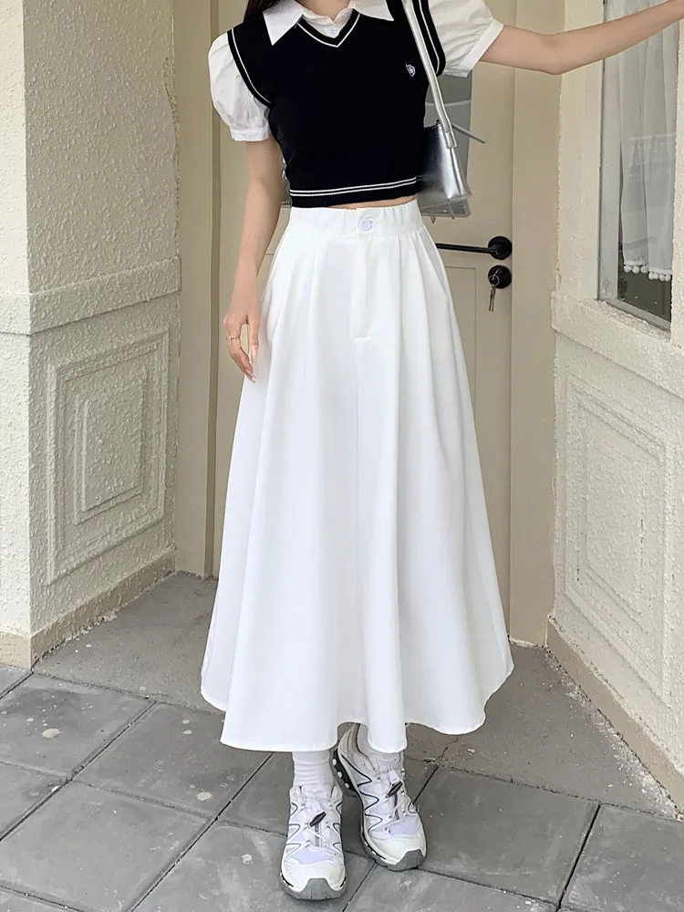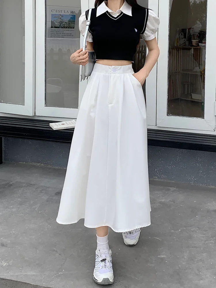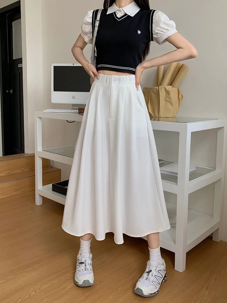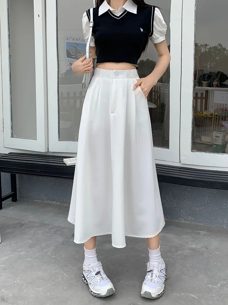 High Waist Women's A-Line Skirt Solid Color Casual Loose Single Button Korean Style Umbrella Skirt Women