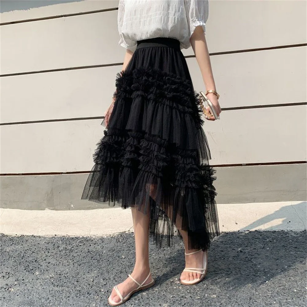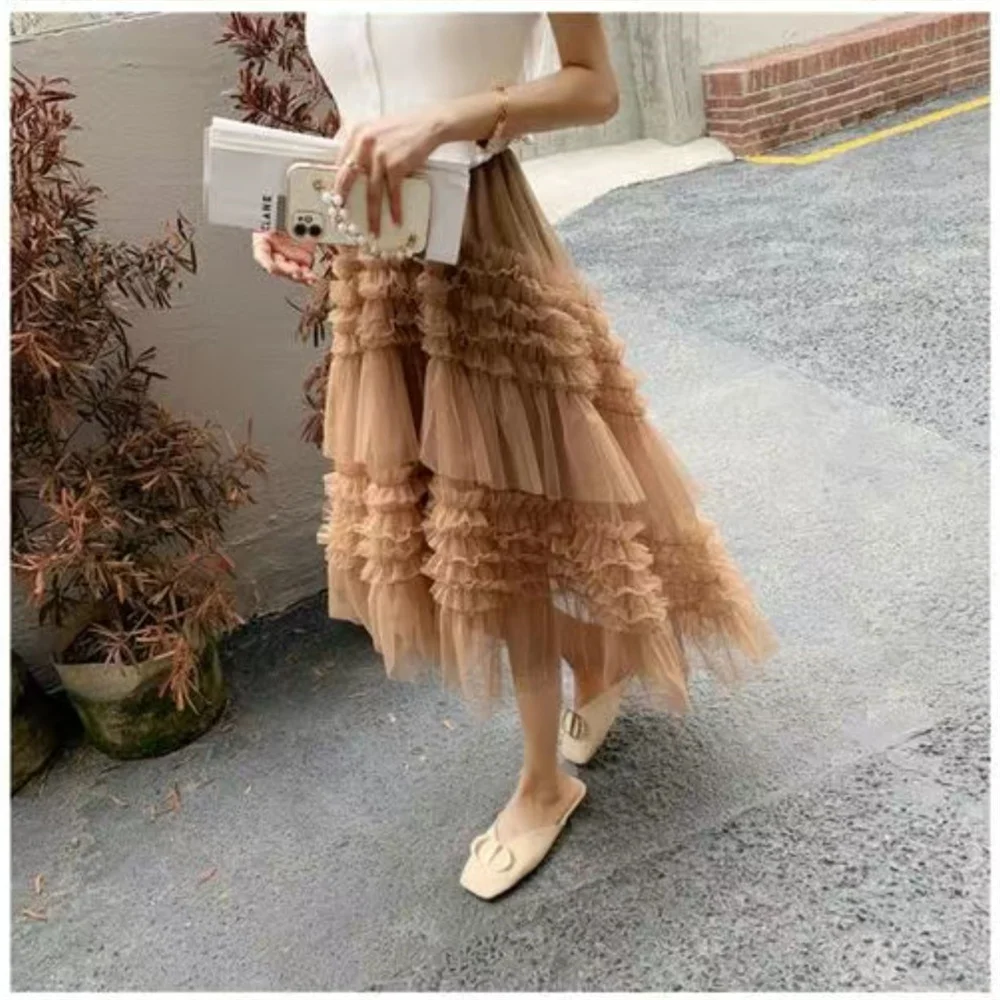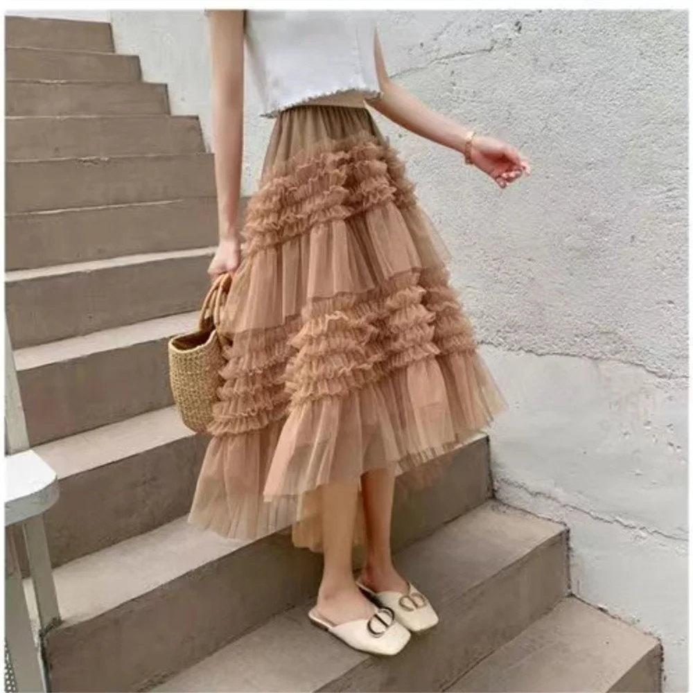 Lace Ruffled Mesh Skirt Sweet Ladies Ball Gown Tulle Skirt