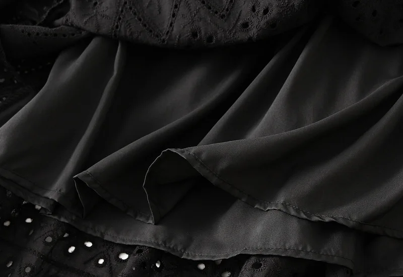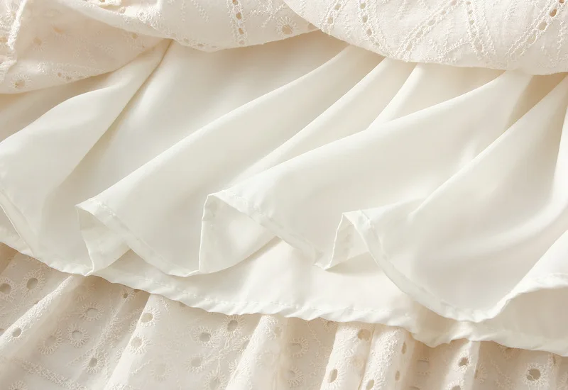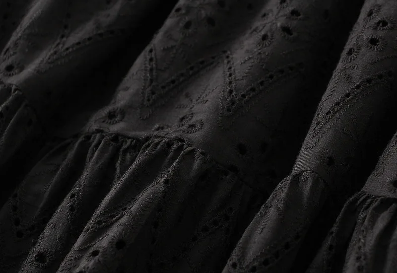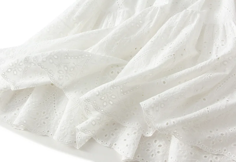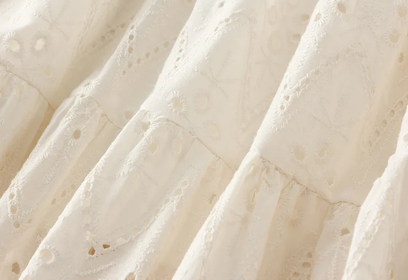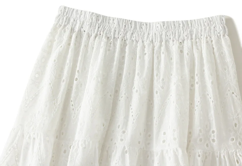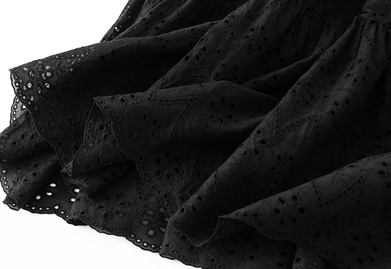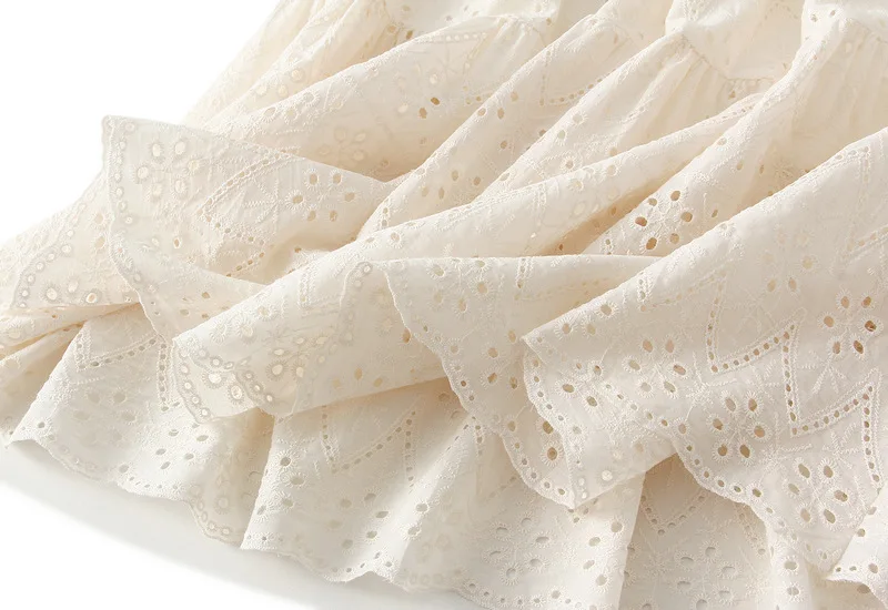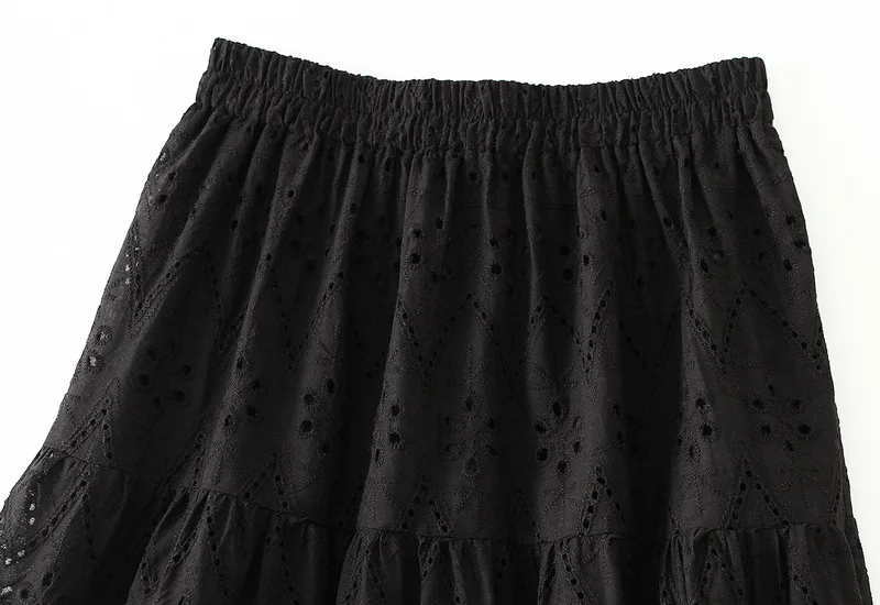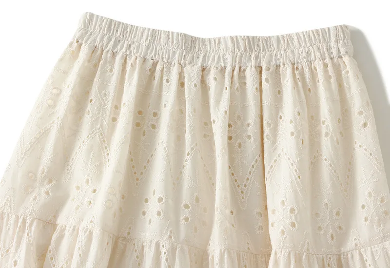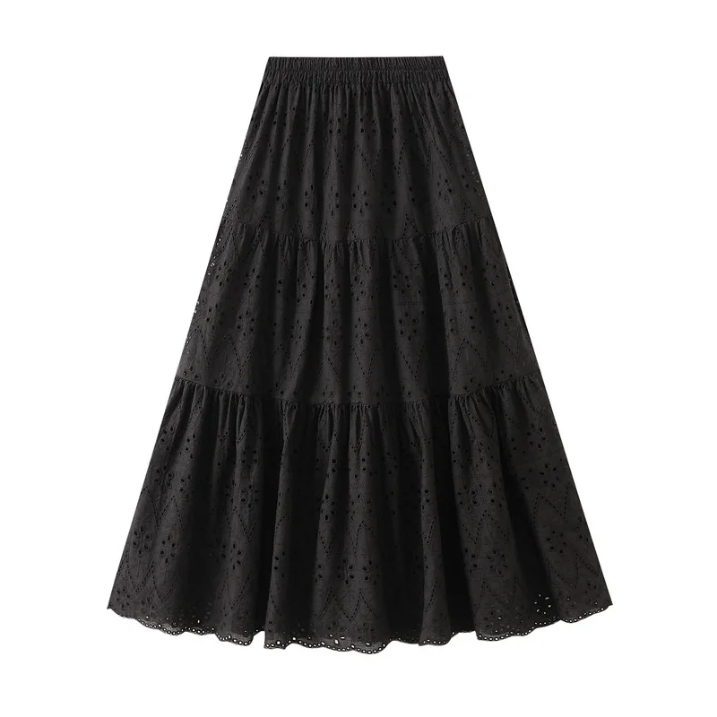 Gentle Style Hollow Maxi Skirt A-Line Skirt Pleated Skirt