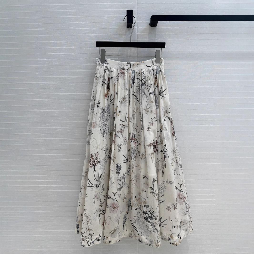 Material: 100% Cotton Pattern Type: Floral Dresses length: Mid-Calf Silhouette: A-Line Waistline : Natural Process: printing Style : Elegant Elasticity: bulletless Pattern: plants and flowers Skirt shape: pleated skirt Skirt category: Skirt Style: fresh air Seasons: Summer Occasion: Daily Outfit Col..