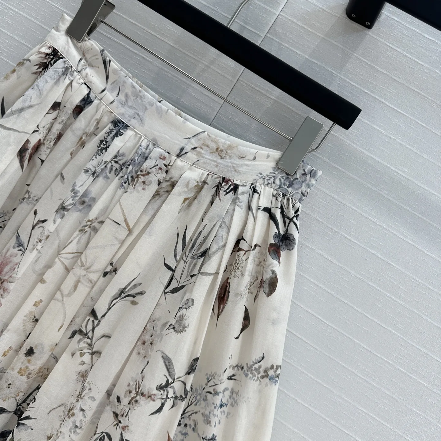 Summer Printed Pleated Long Skirt With Floral Patterns For Vacation Women's Clothing