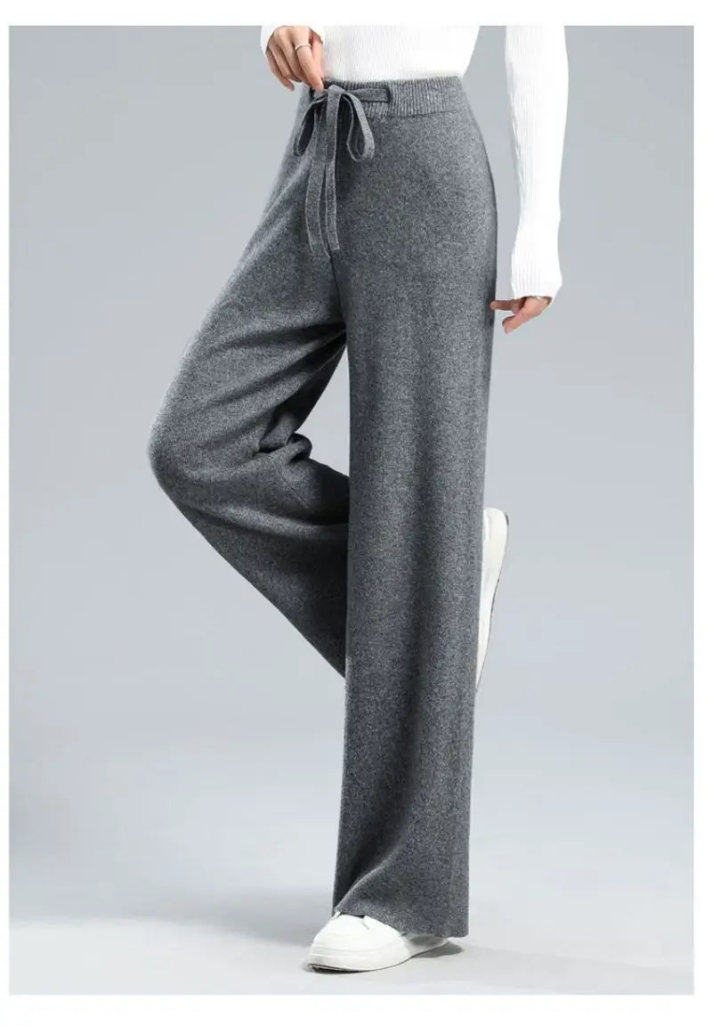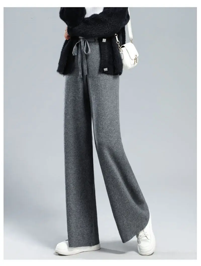 Thick Warm Knitted Casual Wide-Leg Pants Straight-Leg Nine-Point Pants