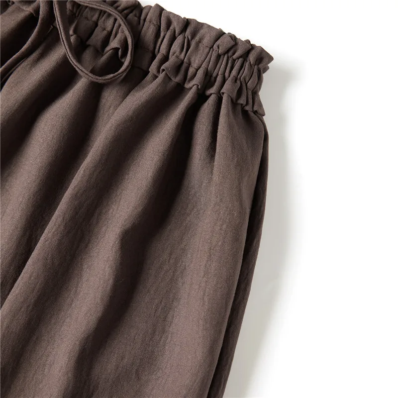 Lace-Trimmed Retro Wide-Leg Pants, Cute Ruffled Pumpkin Trousers, Casual