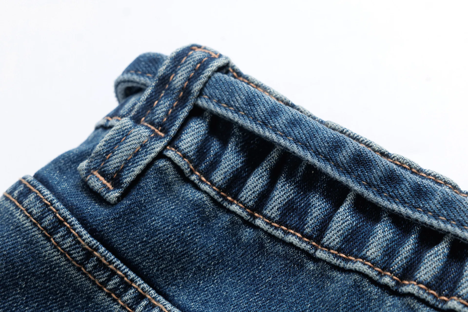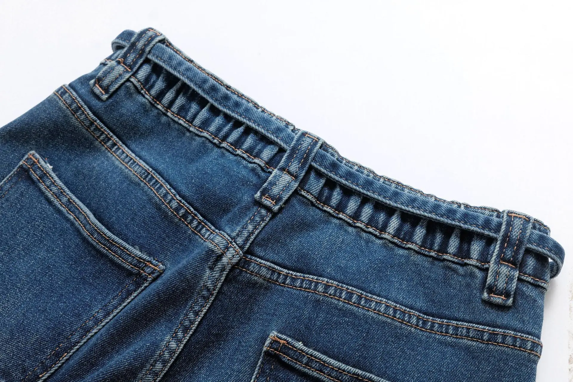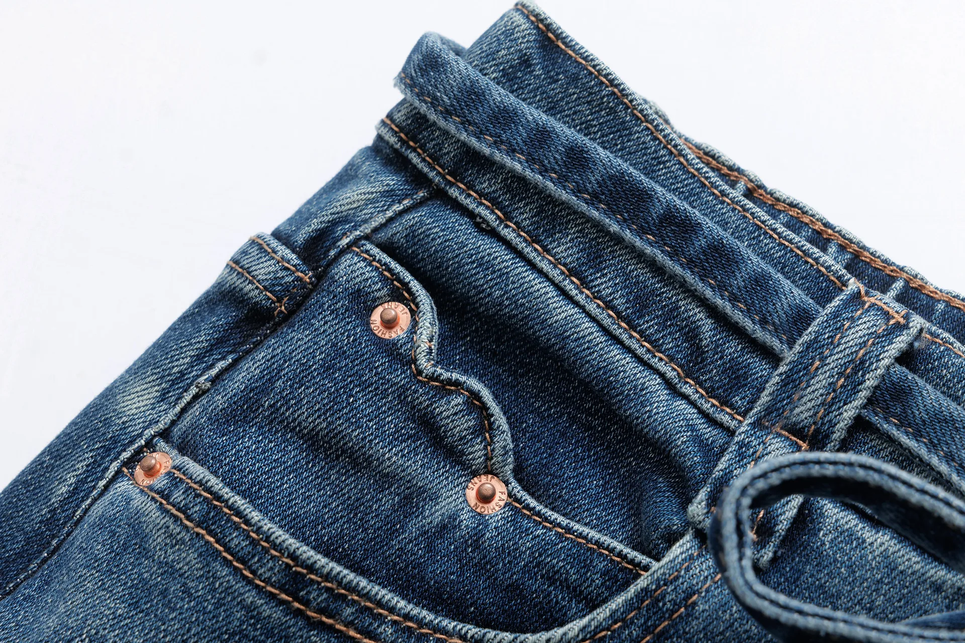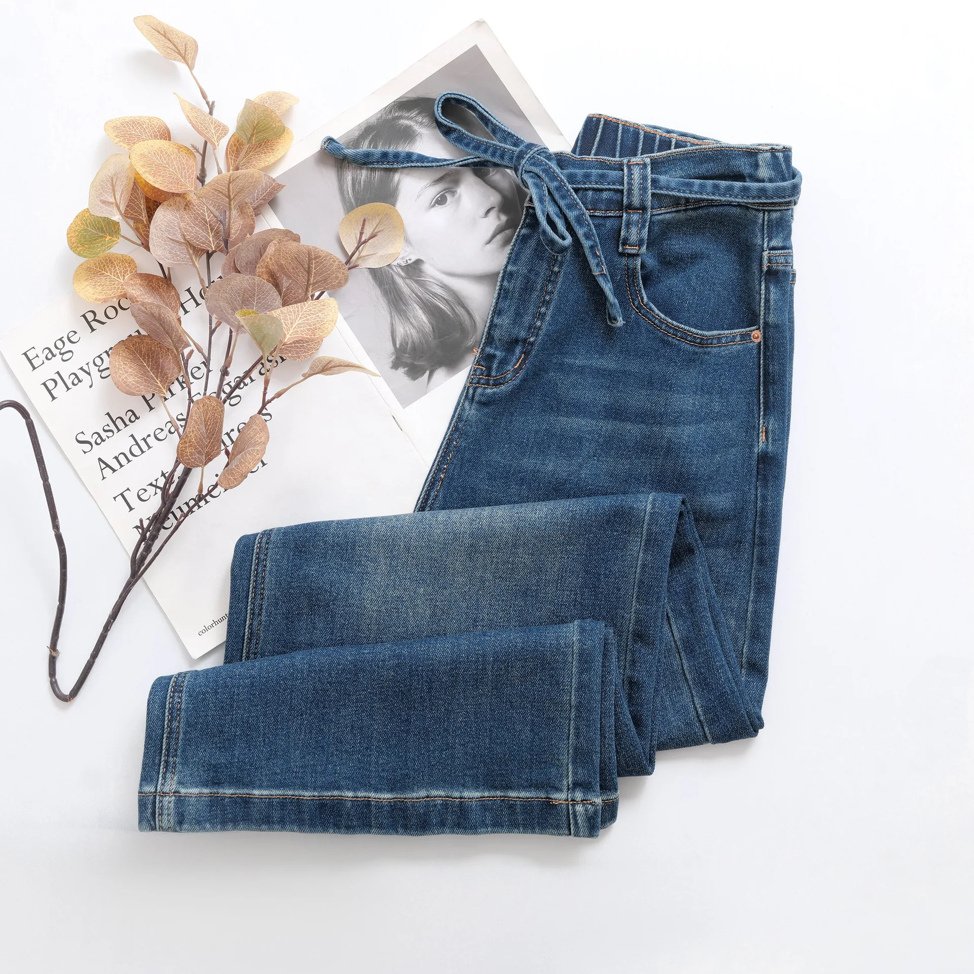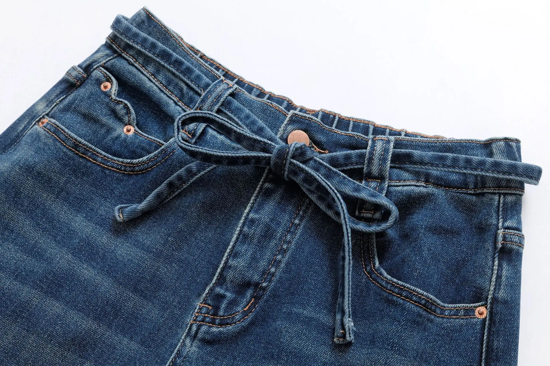Fashion Women's Wide Leg Jeans Vintage Simple Waist Rope Decoration Premium Stretch Denim Full Length Pants