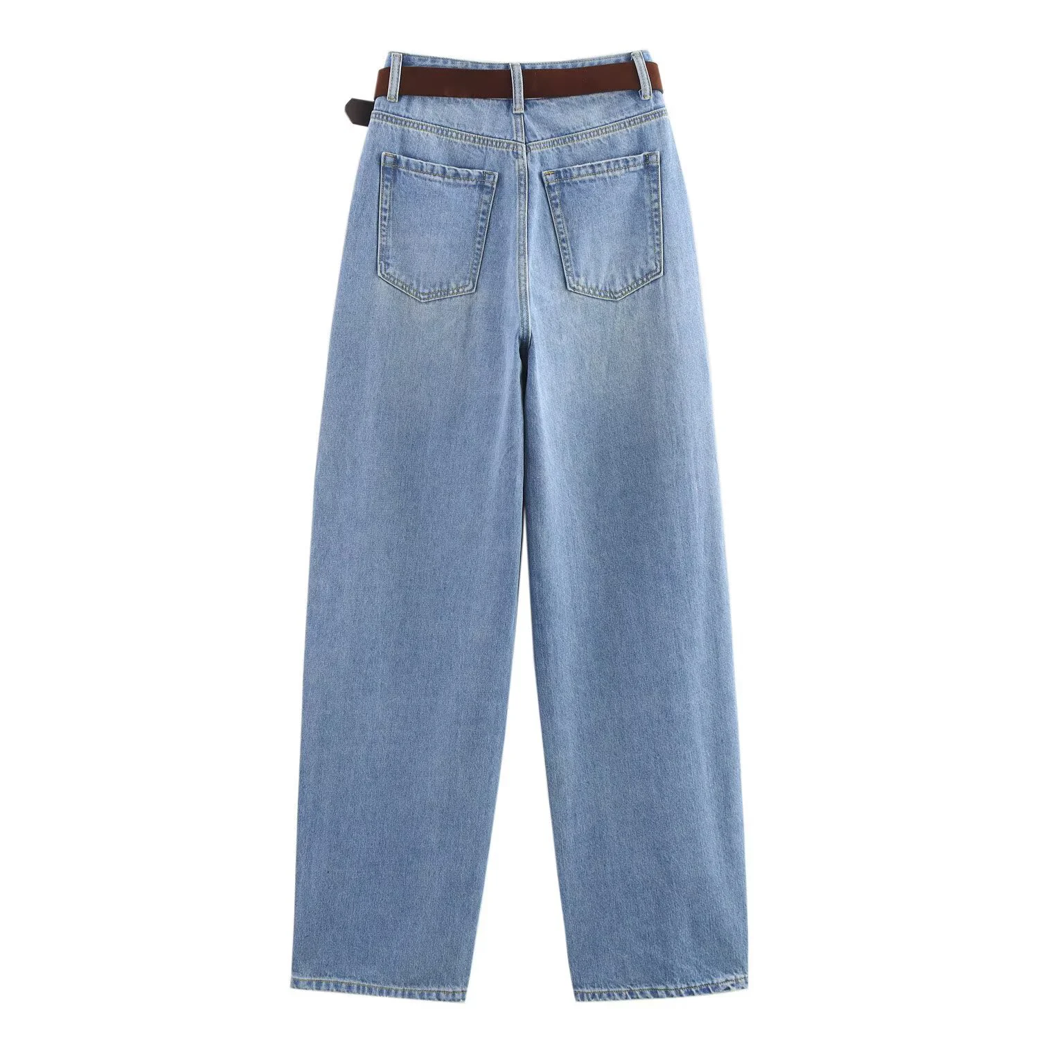 Spring/Autumn Loose Fit With Belt High Waist Wide Legs Jeans