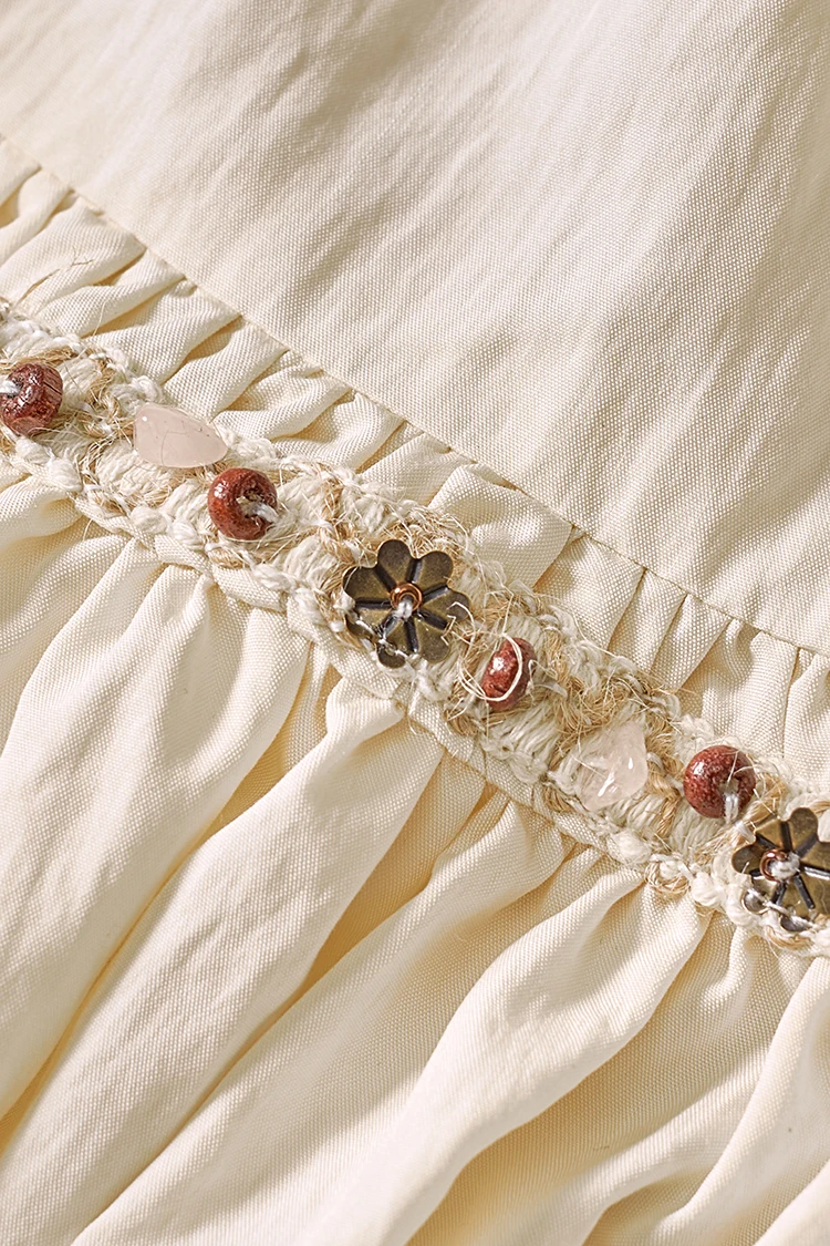 Craft of Weaving:Tat Season:Summer Fabric Type:Blended Dresses Length:Above Knee Mini Decoration:Bright Line Decoration Silhouette:A-Line Pattern Type:Solid Style:Indie Folk Material:Nylon,Viscose Gender:Women Elasticity:Non Strech Color:Beige Size:S-L..