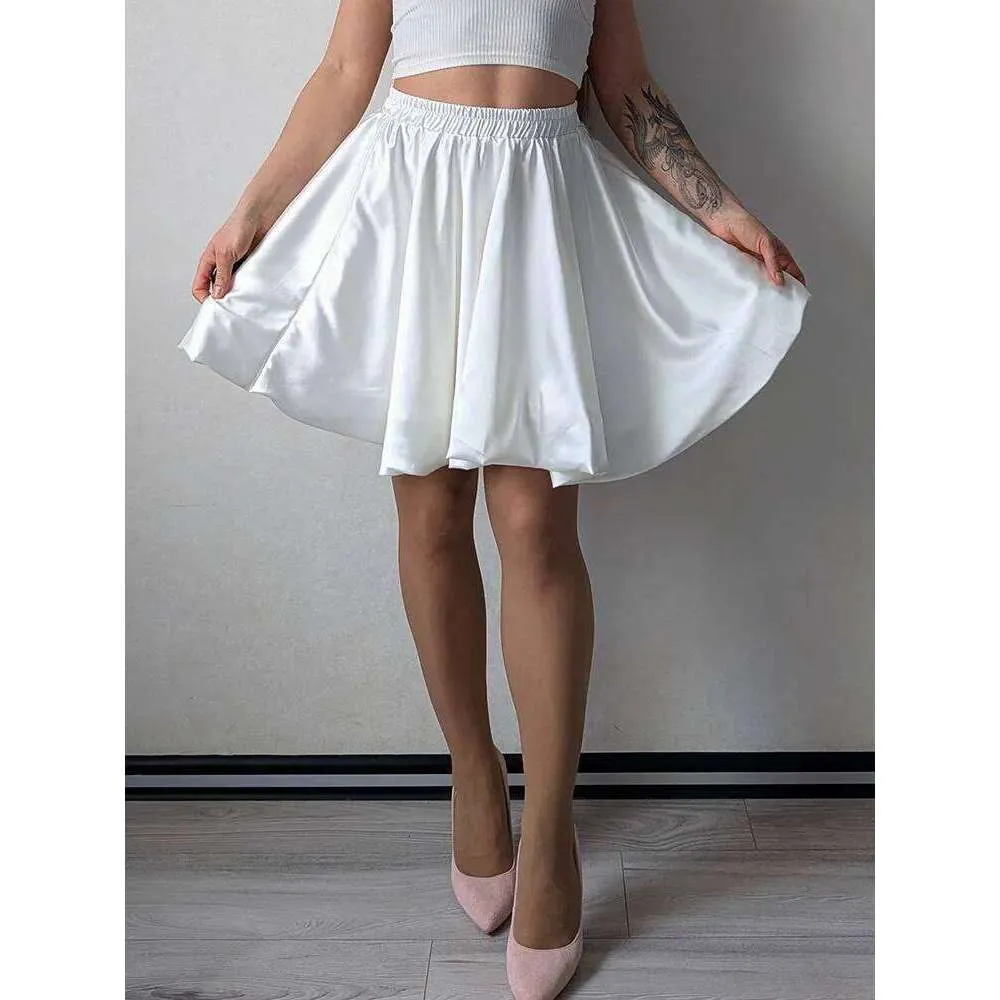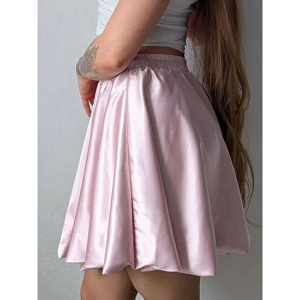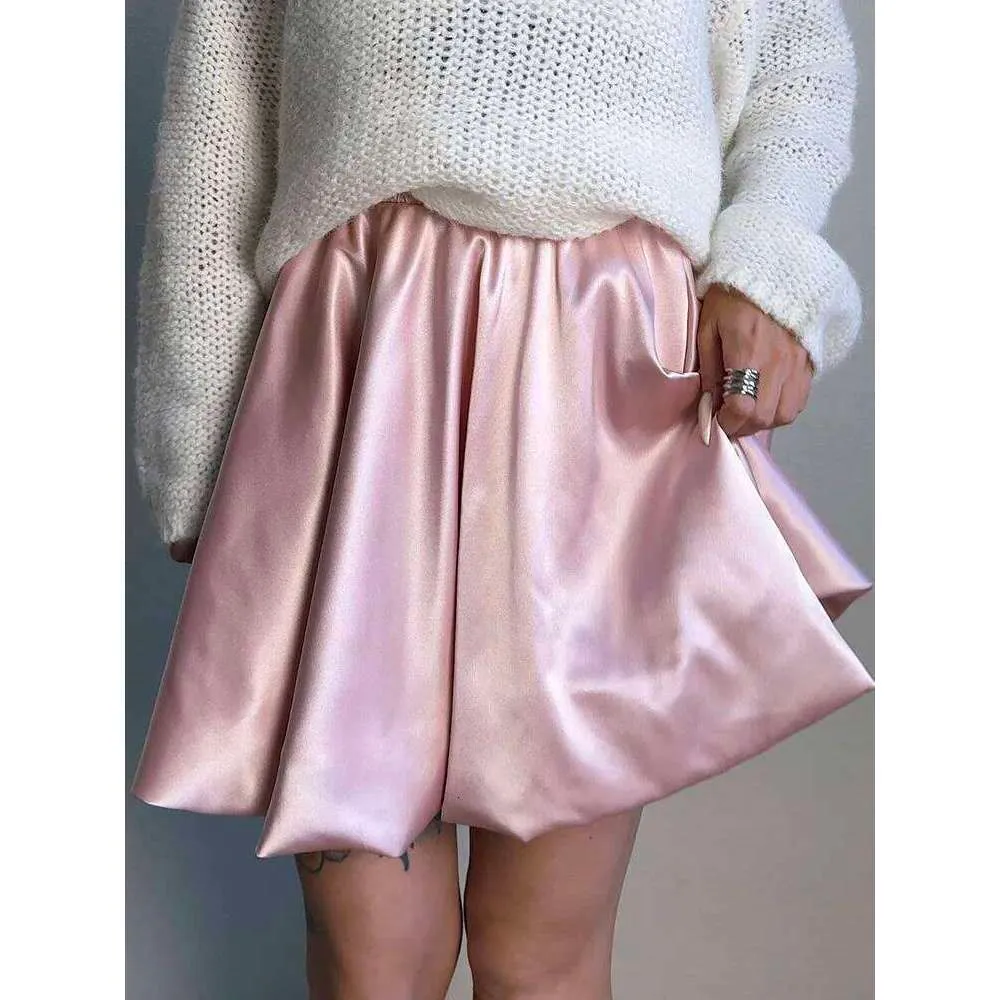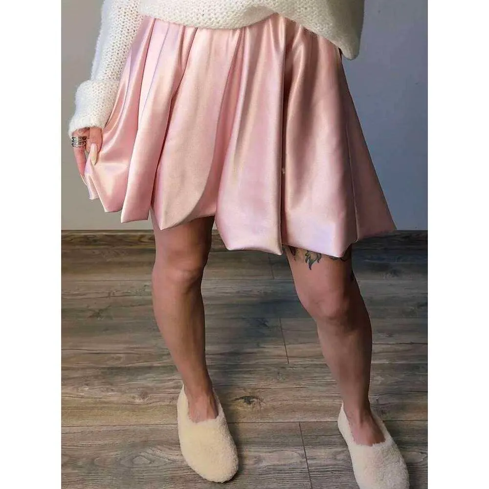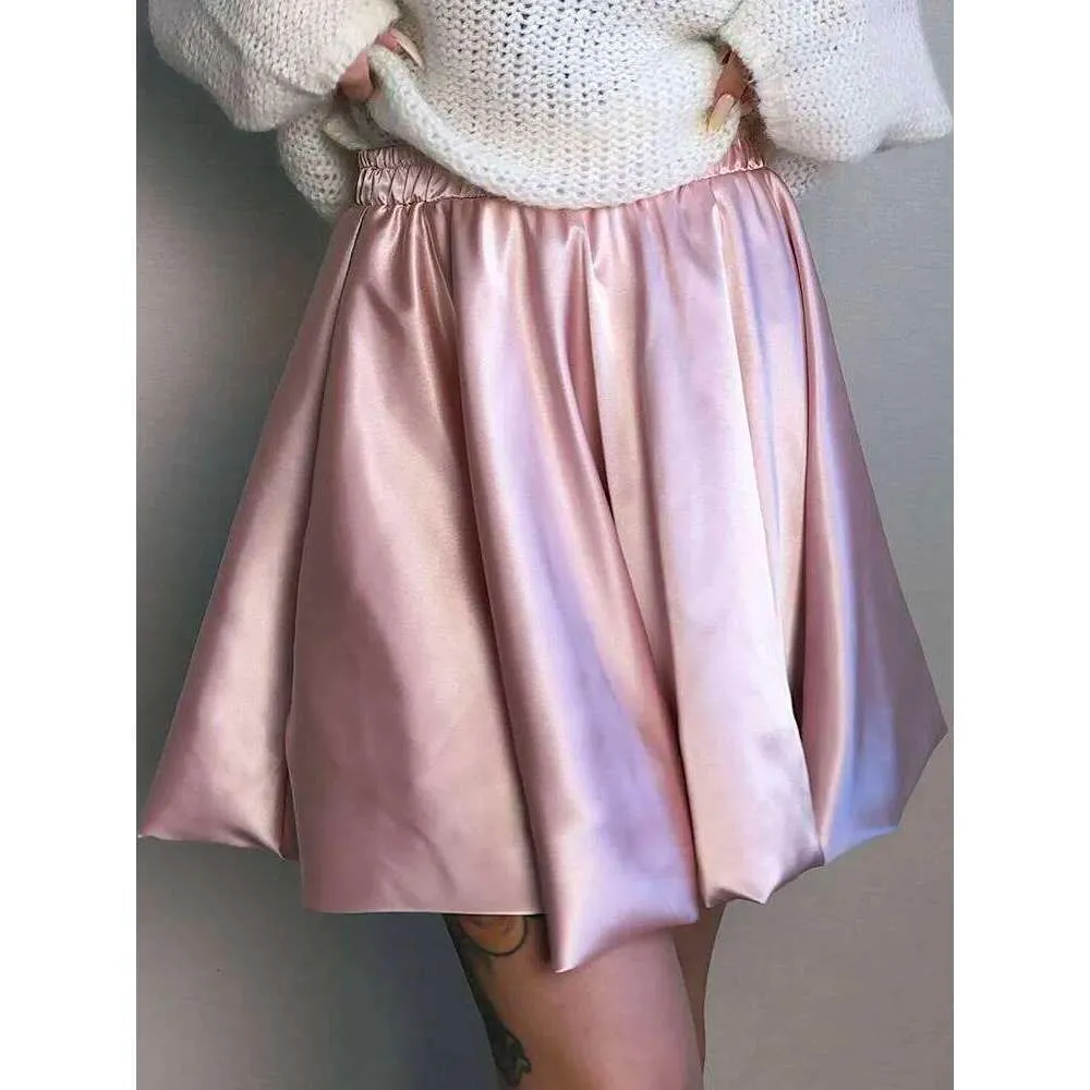 Short Balloon For Shiny Elegant A Line Satin Skirts Female Mini Skirt Women Silk