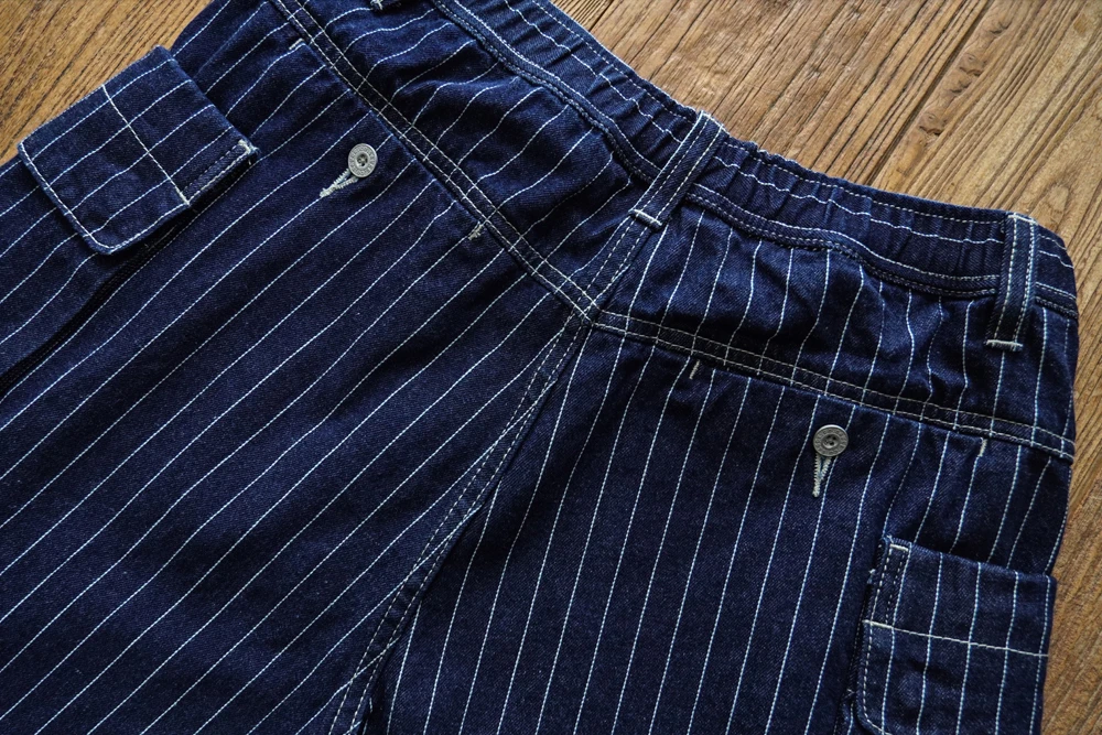 Men Short Summer Stripe Denim Short Multiple Packets Vintage Knee Length Loose Shorts
